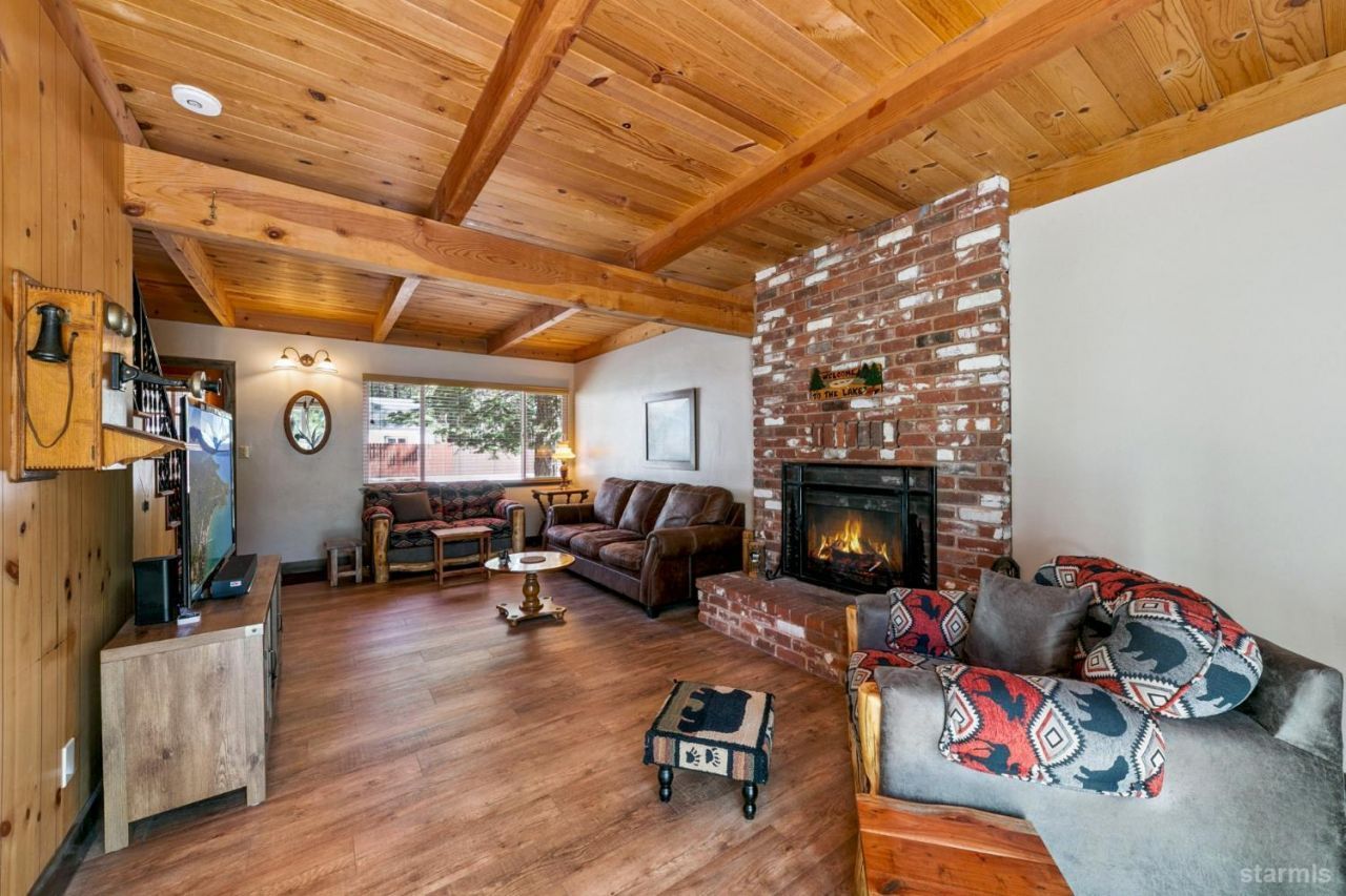 This charming updated Tahoe cabin is located in one of the most desirable areas of the Tahoe Island Drive neighborhood and backs to acres of Conservancy owned land, creating a peaceful forest setting with direct access to an extensive trail system leading to Pope Beach, Camp Richardson, Fallen Leaf Lake, and beyond.The living area features open beam ceilings, laminate flooring, a cozy wood-burning fireplace, and beautiful views of the surrounding Conservancy land. The kitchen has been tastefully updated with custom knotty alder cabinets with soft-close hinges, granite slab counters, new stainless steel appliances, and a pantry offering plenty of storage.The downstairs level includes a remodeled full bathroom with a custom tile stall shower, a stackable washer and dryer, and a comfortable bedroom with laminate flooring and open beam ceilings. Upstairs are two additional guest bedrooms along with a half bathroom that offers the potential to be converted into a full bath.Additional upgrades include a new tankless water heater, newer furnace, new double-pane windows, and fresh carpet in the upstairs bedrooms. The back deck overlooks the forest and Conservancy land, providing a quiet and relaxing outdoor space that truly captures the feel of Tahoe living.