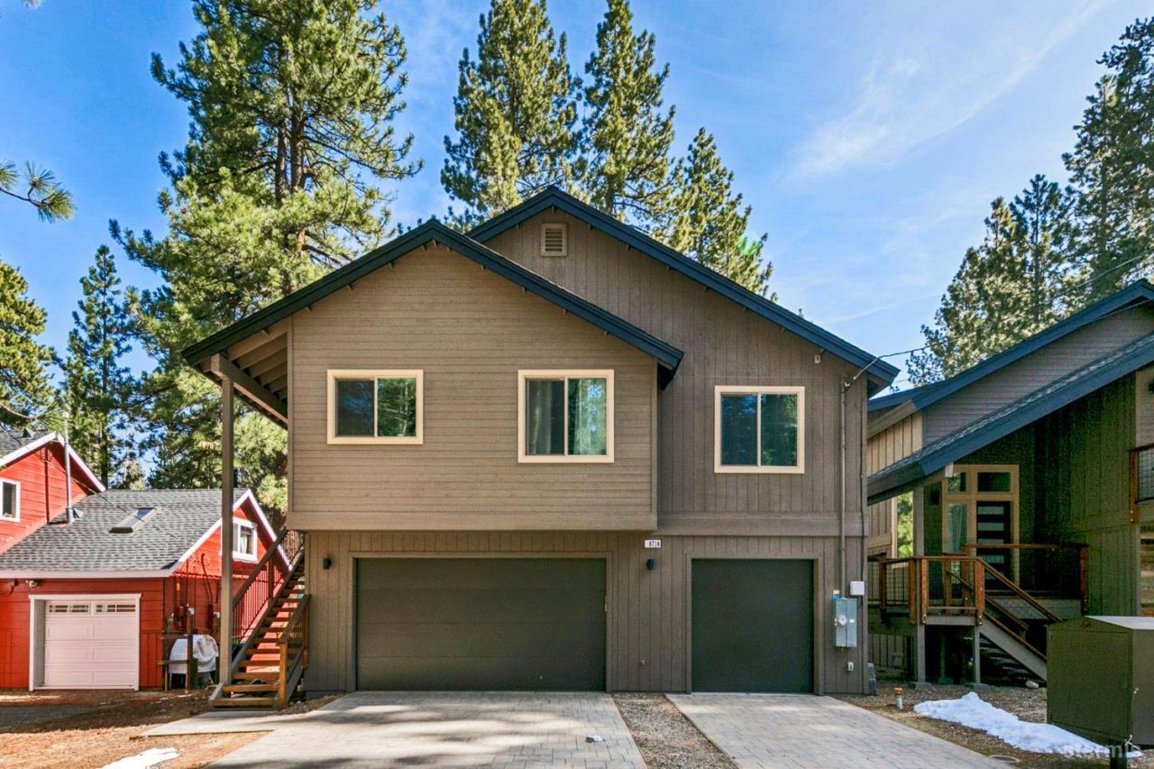 Located in the desirable Gardner Mountain neighborhood, this newer custom home with a detached ADU offers a rare opportunity for flexible living and short or long term rental income potential. Built in 2022, the property includes a 2,381 square foot main home with 4 bedrooms and 3 bathrooms, and a 2 car garage, plus a detached 926 square foot ADU featuring 3 bedrooms, 1 bathroom, and an oversized 3-car garage.The location is ideal for enjoying the Tahoe lifestyle, just 2.5 miles from the beach and only steps from an extensive network of mountain biking and hiking trails leading toward Fallen Leaf Lake, Camp Richardson, and beyond.Upstairs in the main home is a spacious great room with vaulted ceilings, wide-plank wire-brushed white oak flooring, a gas fireplace, and a clean mountain-contemporary design. The kitchen is well equipped with stainless steel appliances, a commercial-style gas range, granite slab counters, a quartz-topped island with wine refrigerator, and an adjoining dining area. The primary suite includes dual closets and a well-appointed bathroom with a modern dual-sink vanity, freestanding tub, and custom tile shower. Downstairs features a large family room with a second gas fireplace and access to a covered deck that is pre-wired for a hot tub.The detached ADU mirrors the quality of the main home and offers upstairs living above an approximately 845 square foot 3-car garage, creating excellent separation between the two residences.The main house is currently rented for $3,950 per month and the ADU for $3,000 per month, with the ADU becoming vacant soon. Whether you are looking for a primary residence with additional income, a multi-generational setup, or a strong investment property, the combination of a newer build and a detached ADU makes this a unique opportunity in the South Lake Tahoe market.
